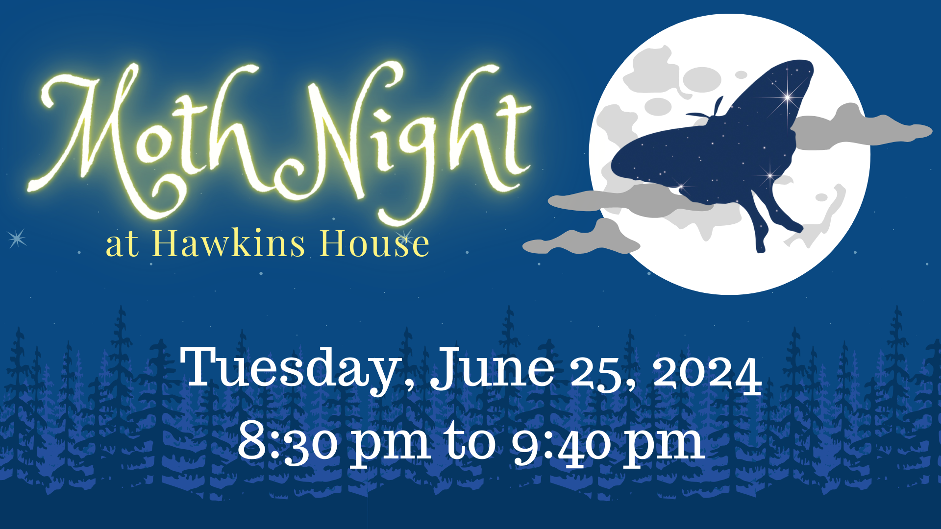 After submitting your registration you will receive an automated email confirmation that will provide the address to Hawkins House and information about what to bring to observe moths.